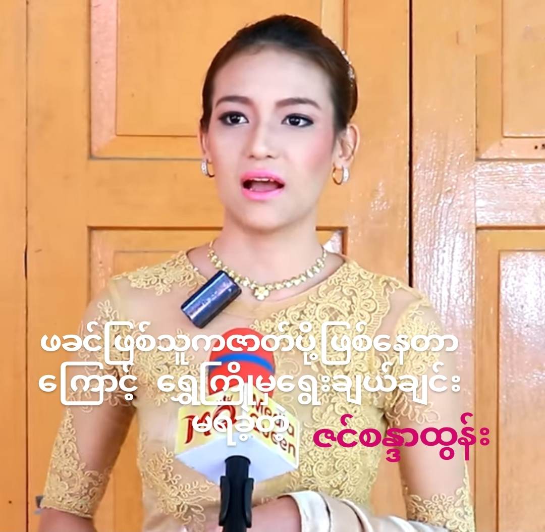 အစကတော့ မပြိုငါရဲ ဘူး ကိုယ်က ဇာတ်ပို့ သမီးဆိုတော့ အရွေးမခံ ရမှာလည်းဆိုးတယ် ပိုက်ဆံကလည်း ပြေလည် ထဲမှာ မရှိတော့ မျက်နာ လည်း ငယ်ရတယ် နောက်ပိုင်းမှ အဖေတွက်နေရာတခု ရောက်အောင် လုပ် ပေးချင်လို့ ဝင်ပြိုင်မိတာပါရှင်